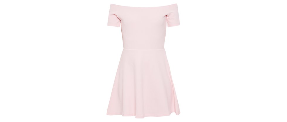 This pastel pink Bardot Neck Skater Dress from New Look, £25, is a great choice for an easy spring day to evening look.