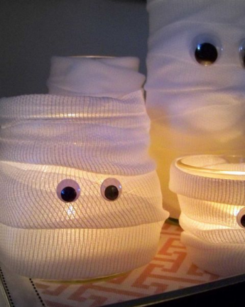 A simple and easy DIY project that will light up your home – we love these cute and spooky mummy creatures! So cheap and easy to make, you‘ll be wishing all Halloween decorations were this easy!