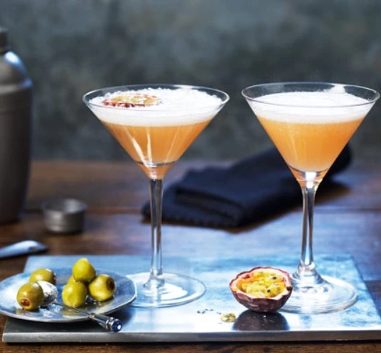 The best thing is, the method is super simple. All you need to do is scoop the seeds from one of the passion fruits into the glass of a cocktail shaker, add the vodka, passoa, lime juice and sugar syrup, before shaking add a handful of ice and serve into 2 martini glasses.